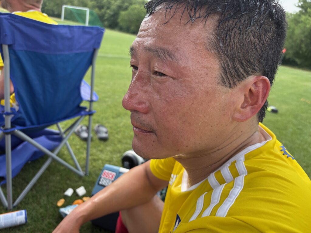 The game turned a bit heated and discombobulated when the referee instituted his “three walls of madness.” First up, Cameron Road won a free kick as a back pass was played to the keeper which he scooped up. Actually, shouldn’t that have been a penalty? The linesman argued for it, but the referee had other plans as Santos set up their wall inside the box. “Only three men in the wall!” The referee repeatedly instructed as both teams were baffled and confused at the new line of on-the-spot rules changes that only Pam Bondi could have rubber stamped. This happened not once, but twice as the Badgers earned another dangerously close-range free kick, but the referee insisted they could only put three men in the wall. Strange, yet Santos held firm, turning the Badgers away both times.