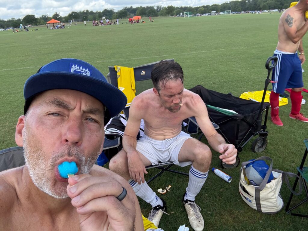 Properly sourced oranges were back at halftime unlike last weekend’s leather covered juice orbs. Chappy was giving out iced water baptisms to keep folks cool.