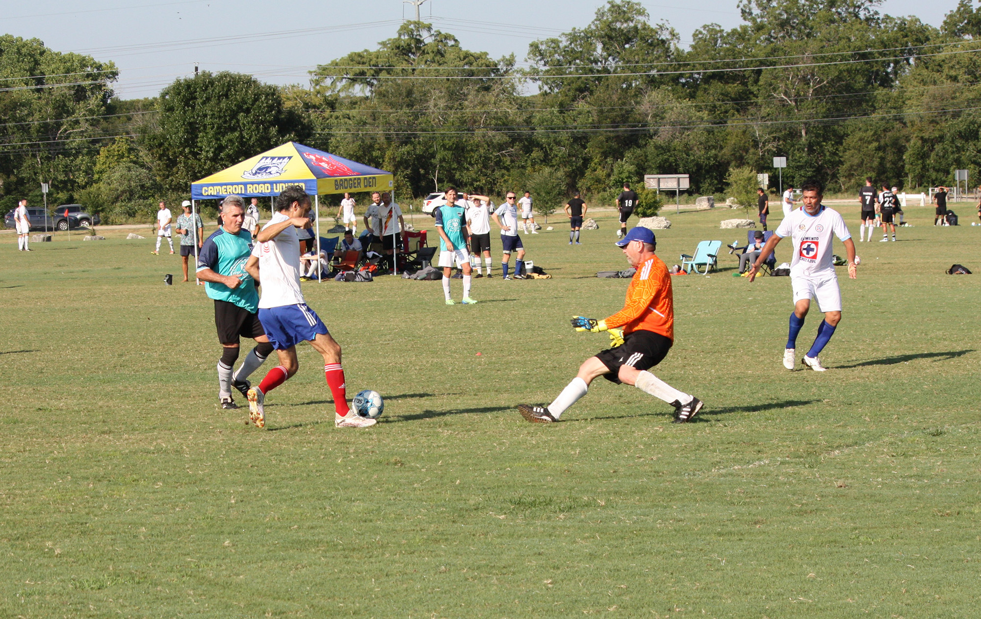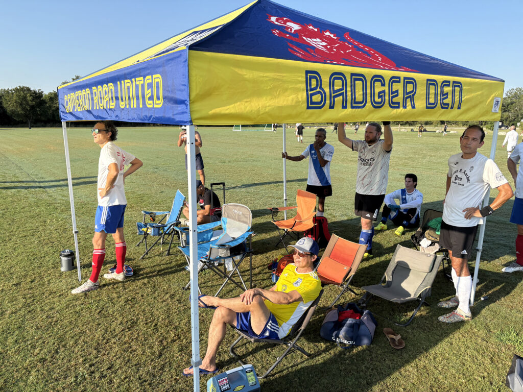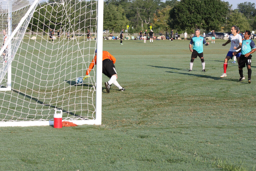 Cameron Road finally put it all together in their first win of the season. Two great goals, some even better saves, awesome shutout defense, and a total team effort allowed the Honey Badgers to close out the game in style. With McKenna and Z unavailable, Cameron Road elected to play a lone, bald front man…