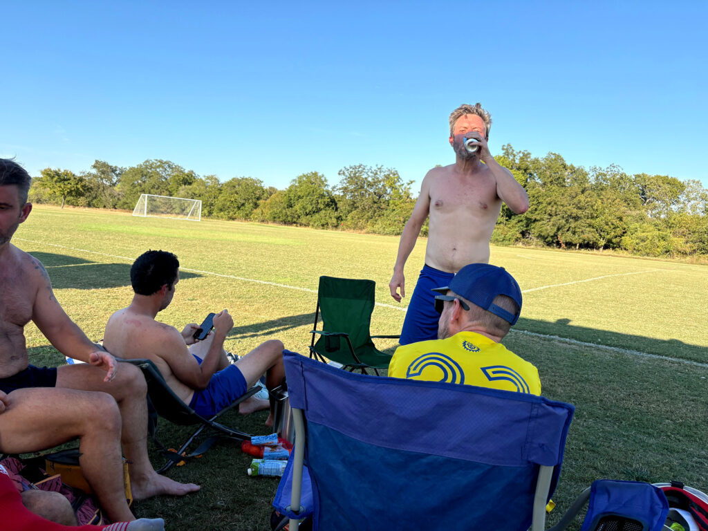 A 4:00pm kickoff on the alleged cusp of Fall in Austin — a season which, in theory, brings crisp breezes and pumpkin spice, but in practice still bathes you in 95-degree hellfire while pollen grenades explode in your sinuses. Perfect soccer weather, in other words. And what better way to celebrate it than showing up at Onion Creek with nine men?