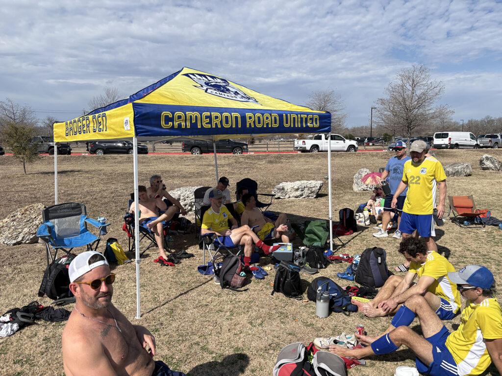 Man-of-the-Match: Andy was early to the game, played midfield and defense, had blue shorts, and provided his captain with a non-alcoholic IPA