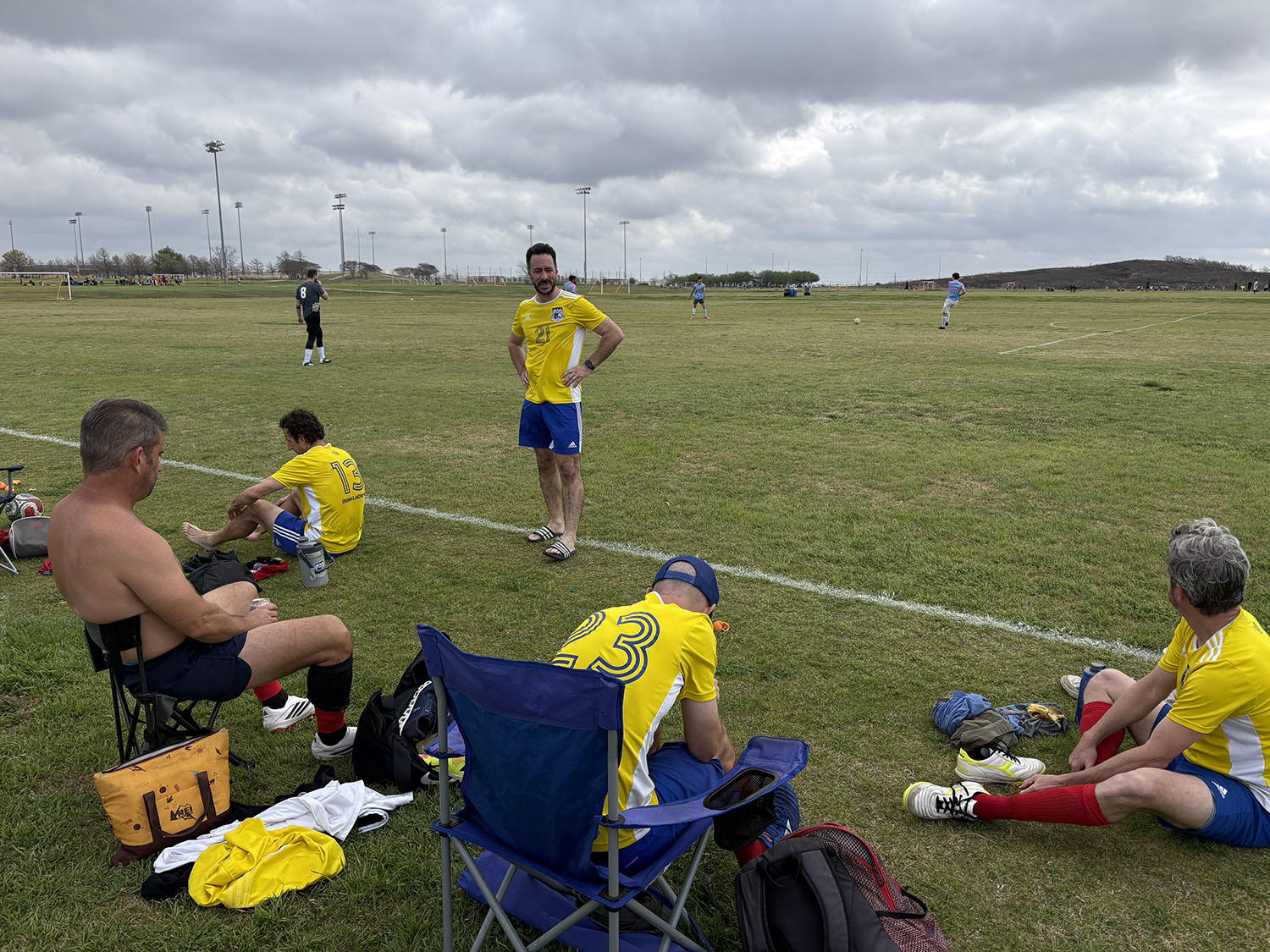 Chappy was 12 hours back from a week’s worth of margaritas in Mexico on one wing, and Peterson both “put it up” and “sent it” from the left wing. In the center of the field, Yunir and Schwarzy were salsa dancing with lots of intricate passes allowing Camron Road to move the ball forward to the the lone striker, Derek.