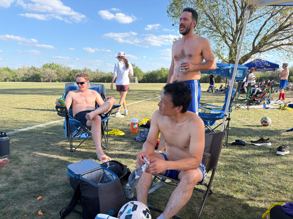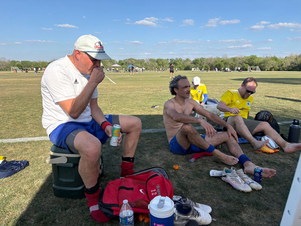 The game started off nicely with Cameron Road controlling things. Austin Athletic were frequent visitors to the CRU end of the pitch, but the defense was shutting them down by cutting of passing lanes, clearing balls from danger and providing Jaybone Thugs’n Harmony with a protective blanket of headers, elbows, shins and elbows.