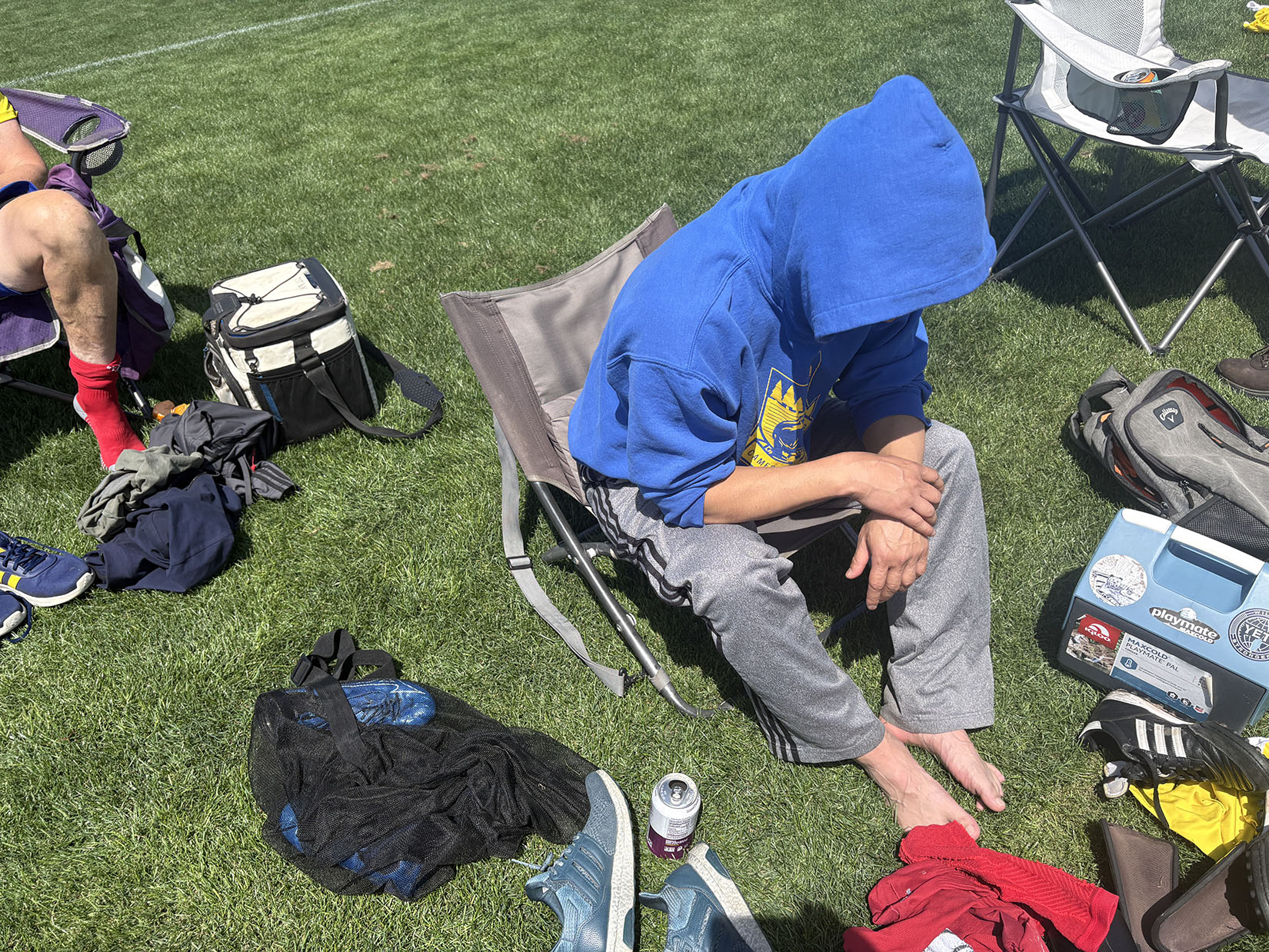 When the dust settled on all pre-game travel, CRU had 3 subs next to the tent, which somehow didn’t make it out of its giant sheath. With Gianluca out-of-pocket, the troops jostled for the 2nd position up top, but Sir Parks took the honors for the first shift next to Derek.